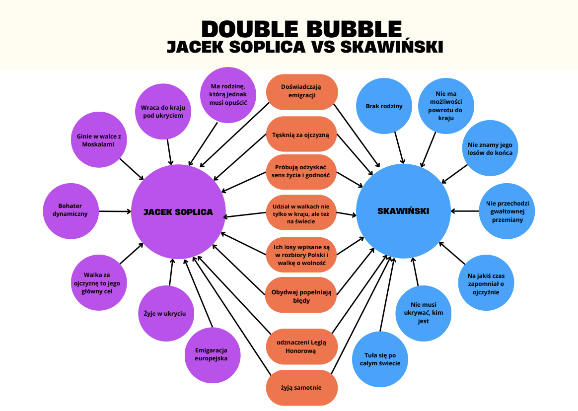 mapę double bubble - porównanie Skawińskiego z Jackiem Soplicą z przykładowymi odpowiedziami