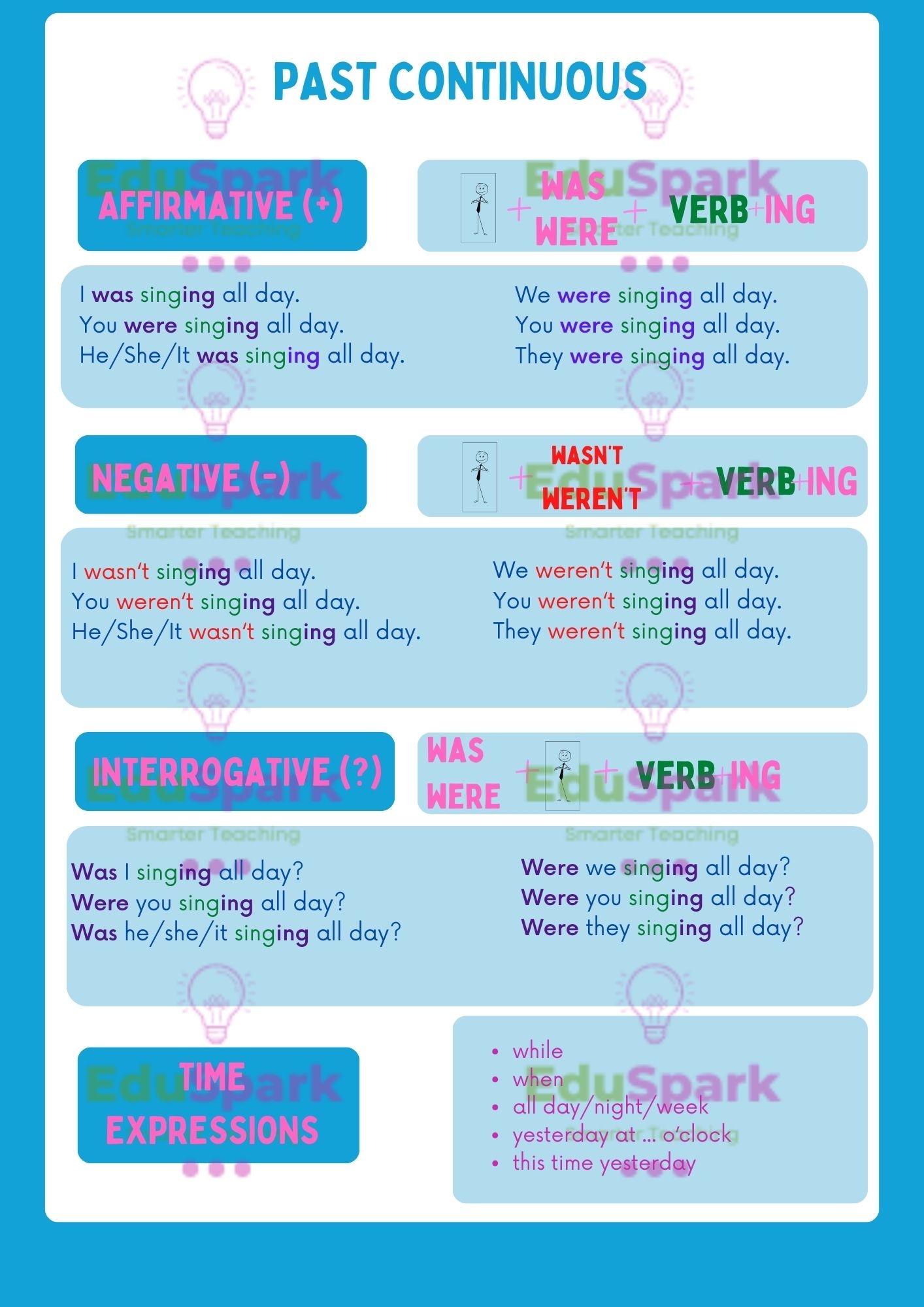 Wklejka do zeszytu Past Continuous - konstrukcja, przykłady i określenia czasu.