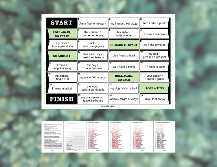 – To lista 25 promptów do zdań z planszówki i to w takiej formie, że może również posłużyć jako typowe ćwiczenie do uzupełnienia pisemnie.