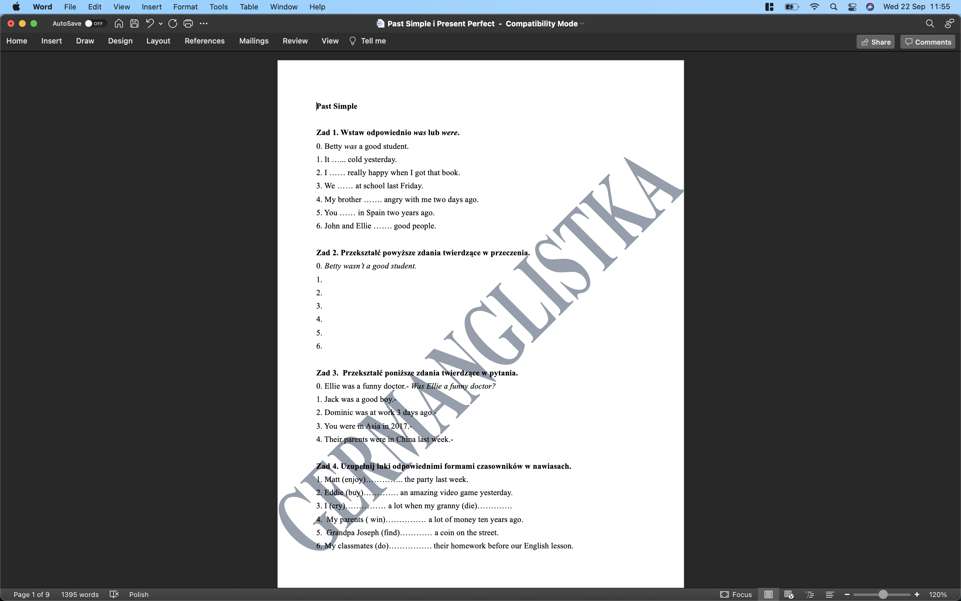 Ćwiczenia porównawcze z 7 podstawowych czasów - eg…
