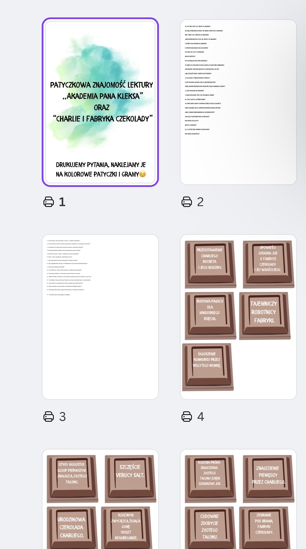 Materiał zawiera pytania do lektur oraz czekoladowy plan wydarzeń.