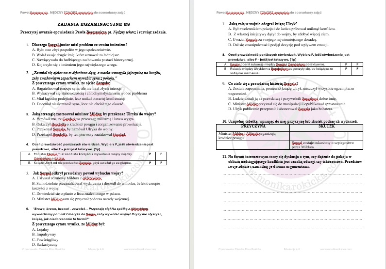 ✅ BONUS! Test wielokrotnego wyboru wspierający czytanie ze zrozumieniem oraz ćwiczenie w stylu egzaminu ósmoklasisty. Oba materiały z kluczem odpowiedzi!