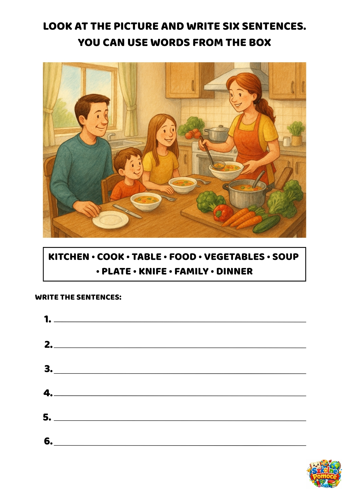 Konkretna struktura: Zadanie jest jasne – uczeń musi sformułować dokładnie 6 zdań. To uczy planowania wypowiedzi i eliminuje pisanie „na odczepnego”.