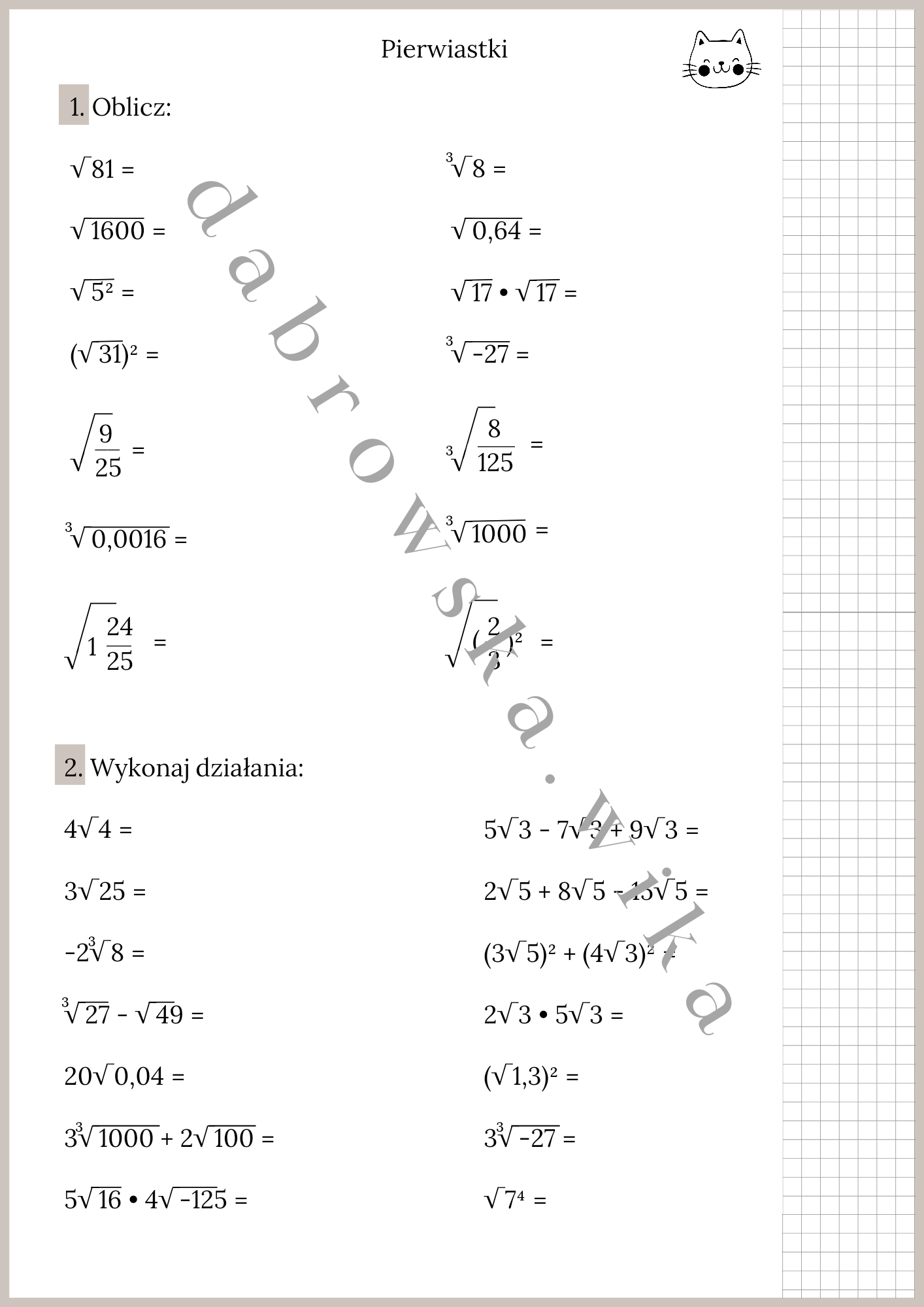 Materiał zawiera kartę pracy dotyczącą obliczania pierwiastków i prostych działań na nich.