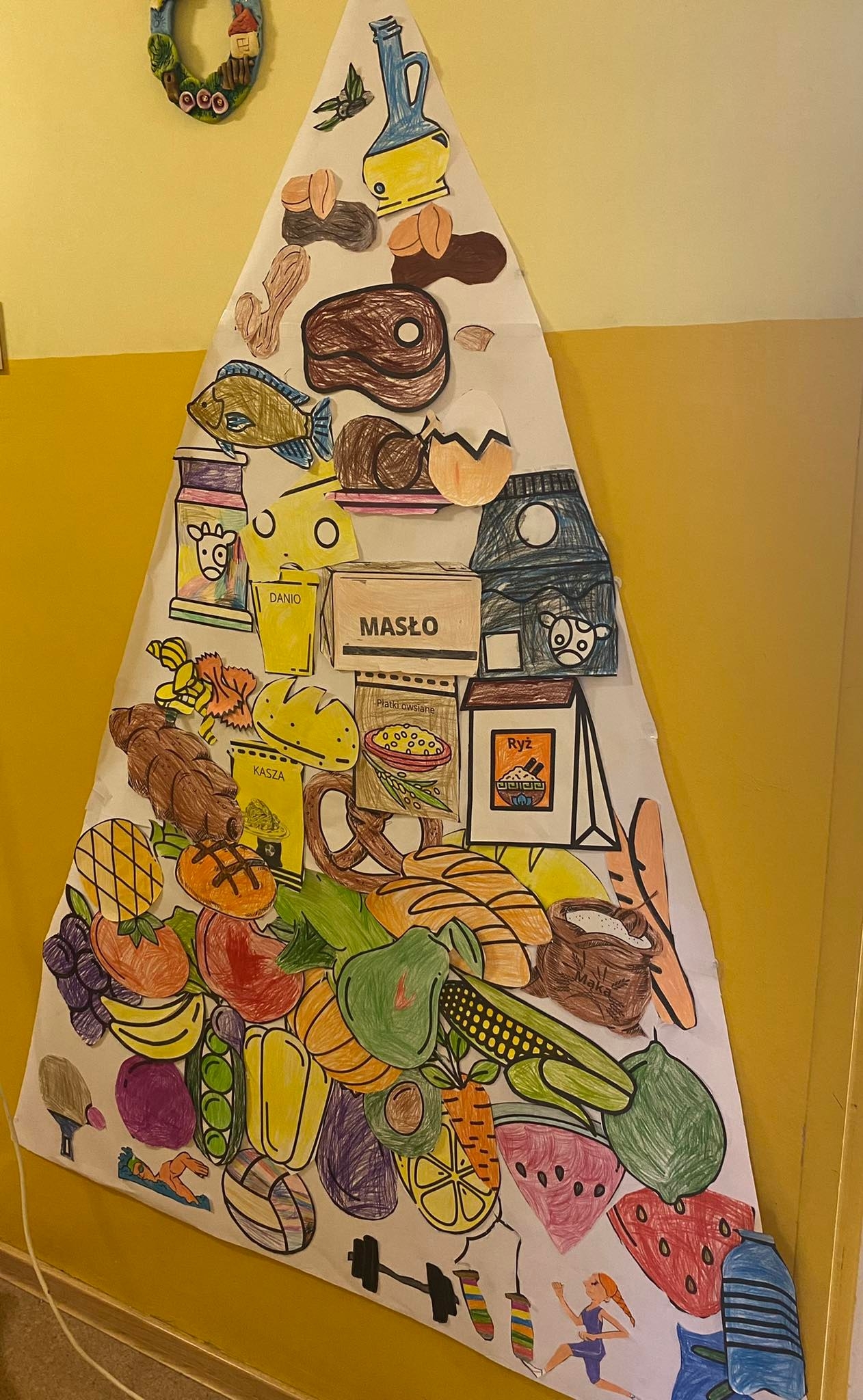 Piramida żywienia - rysunki (widoczne na zdjęciu)