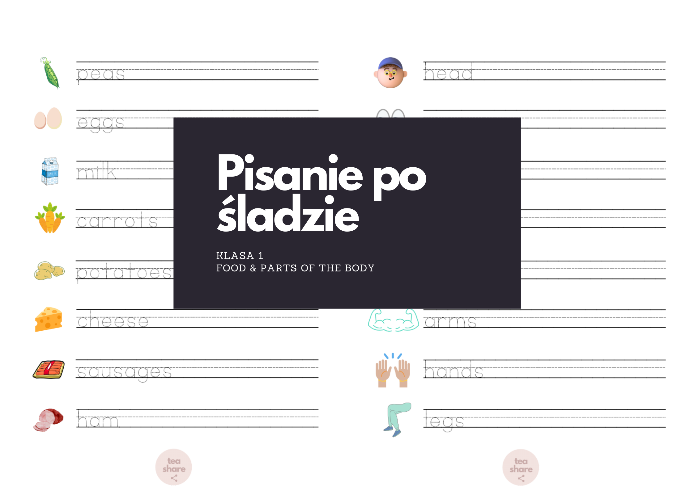 Pisanie po śladzie: FOOD & PARTS OF THE BODY, klasa 1