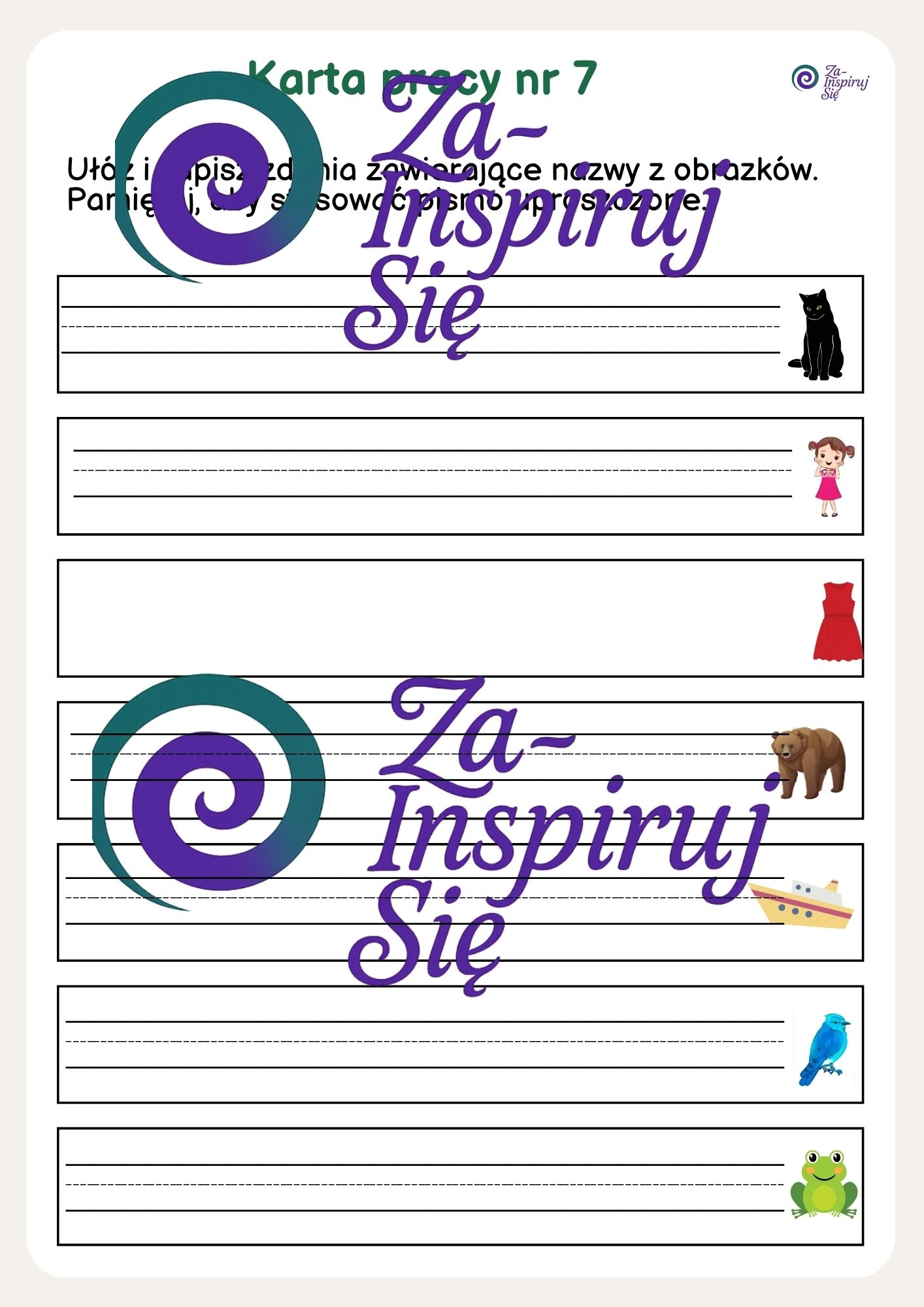 – gotowe do druku strony z liniaturą, wzorami liter, wyrazami i zdaniami do przepisania. Przetestowane na lekcjach – skuteczne i przyjazne uczniom.