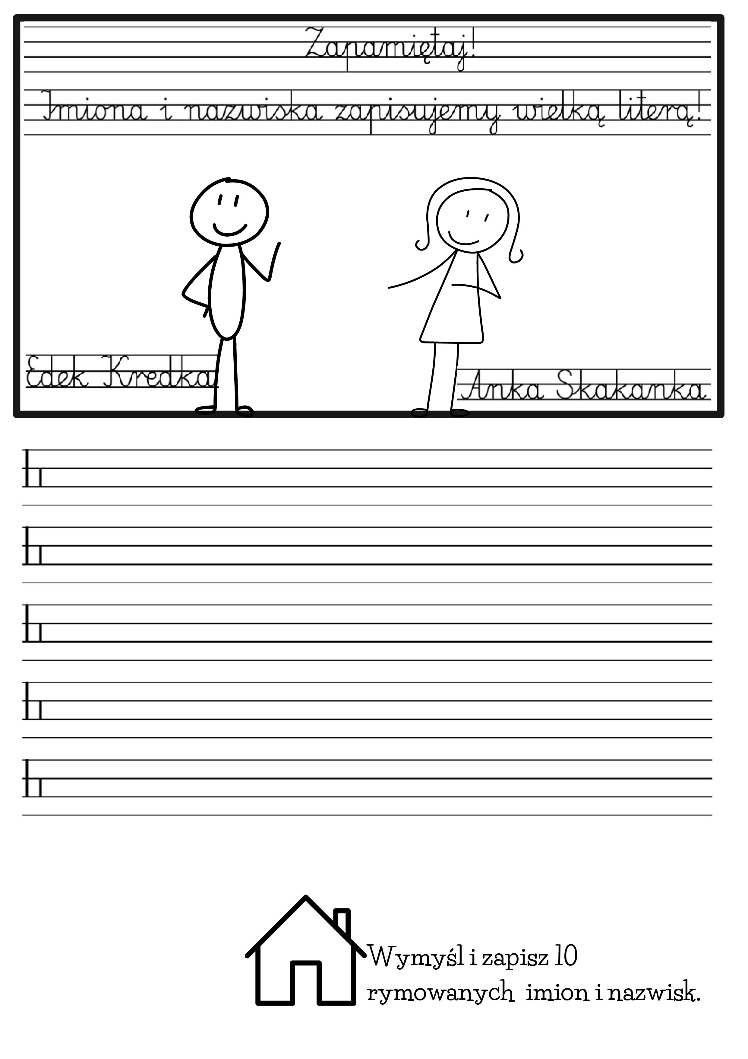 Karta - wklejka - do ćwiczenia zapisywania imion i nazwisk wielką literą.