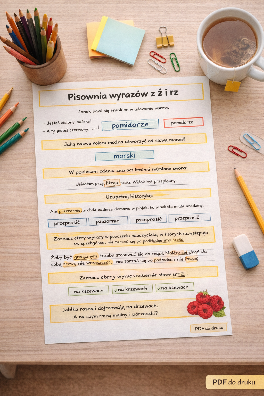 #ortografia #pisowniaŻiRZ #kartyPracy #edukacjaWczesnoszkolna #naukaPisania #językpolski #szkołapodstawowa #materiałyDlaNauczycieli #materiałyDlaRodziców #pdfdladzieci #drukowanka #ćwiczeniaOrtograficzne #naukaprzezzabawę #edukacjacyfrowa #pracaklasowa #pracadomowa #edukacjadomowa #polskidladzieci #gramatyka #polonista #nauczycielka #szkoła #edukacja