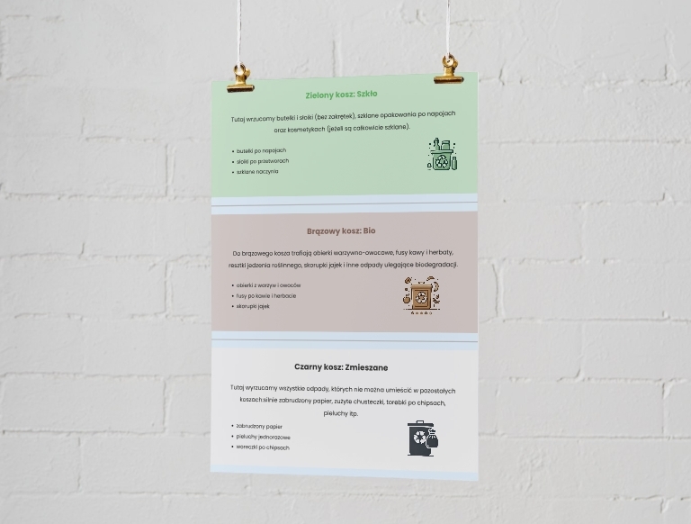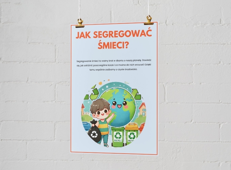 Zestaw kolorowych plakatów edukacyjnych stworzonych z myślą o dzieciach, młodzieży i dorosłych, które pomagają zrozumieć zasady ochrony środowiska i prawidłowej segregacji odpadów. Materiały te prezentują w prosty i atrakcyjny sposób kluczowe informacje na temat ekologii, takie jak: