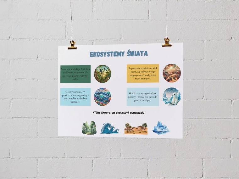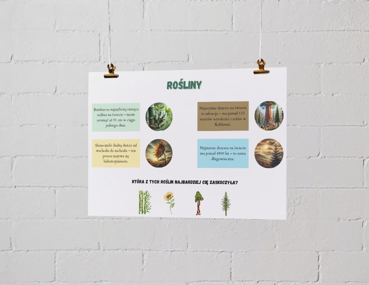 Poznaj fascynujący świat przyrody dzięki naszemu edukacyjnemu zestawowi plakatów! Ten unikalny materiał został zaprojektowany z myślą o dzieciach, uczniach i nauczycielach, aby połączyć naukę z zabawą w atrakcyjnej i przyjaznej formie.