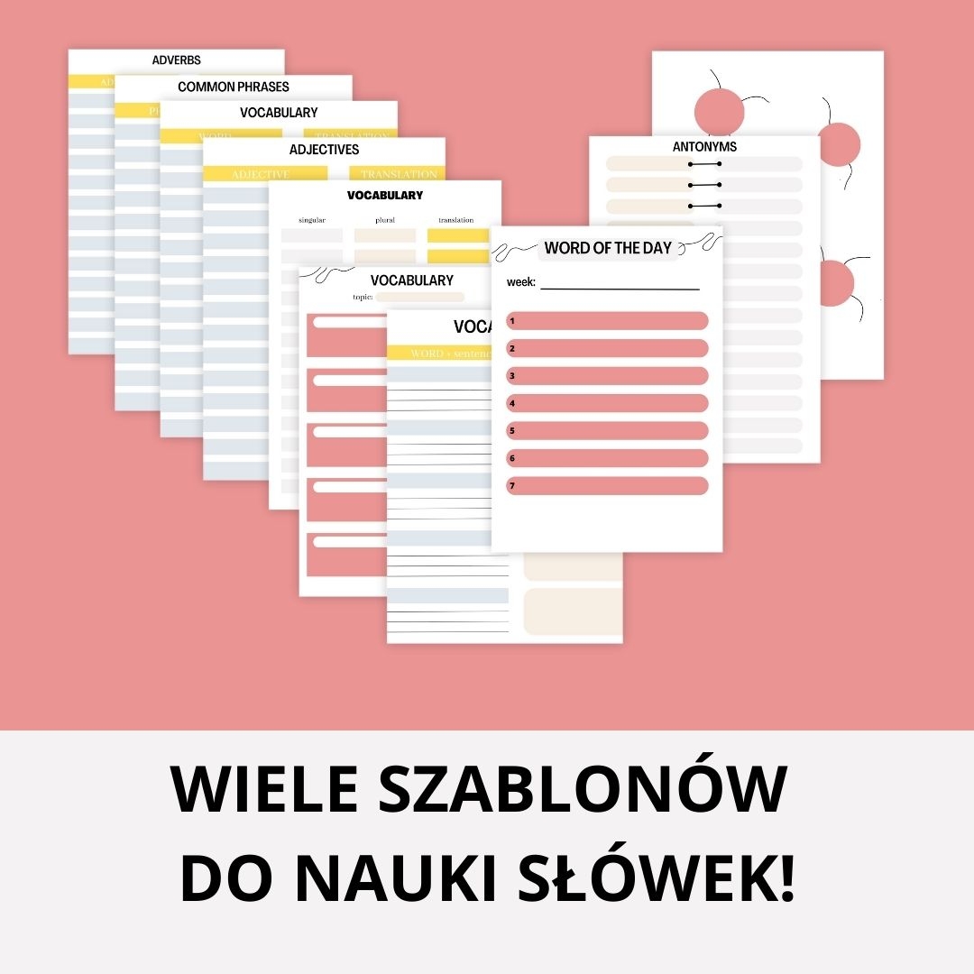 znajdziesz karty do organizacji nowo poznanych słówek, które pozwolą Ci na lepsze zapamiętywanie