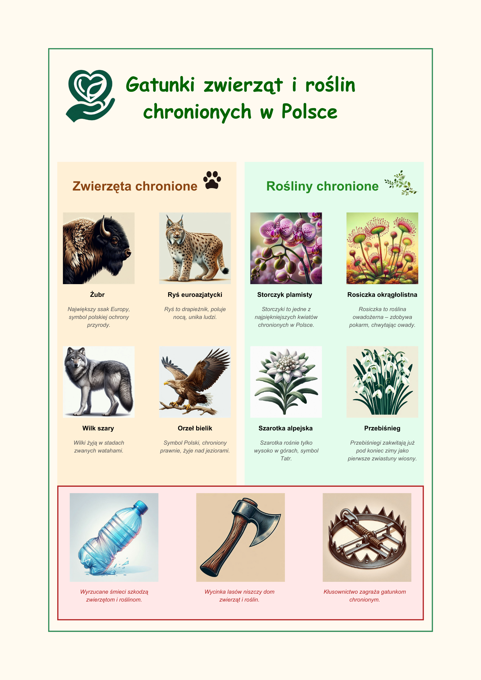 ⚠️ Pamiętaj! Wyrzucanie śmieci, wycinka lasów i kłusownictwo zagrażają naszym cennym gatunkom. Działajmy odpowiedzialnie!