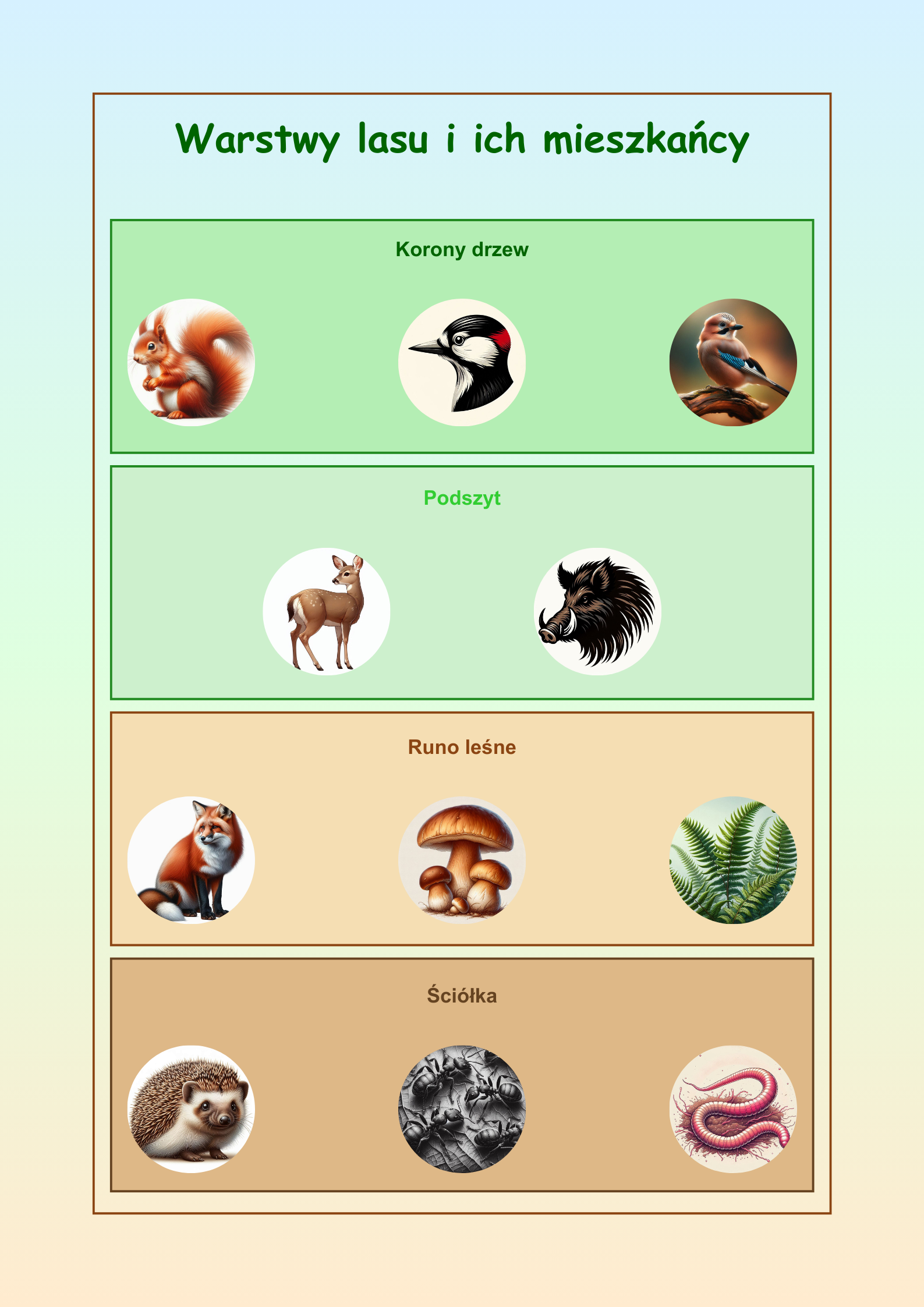 🌲 Poznaj warstwy lasu i ich mieszkańców: