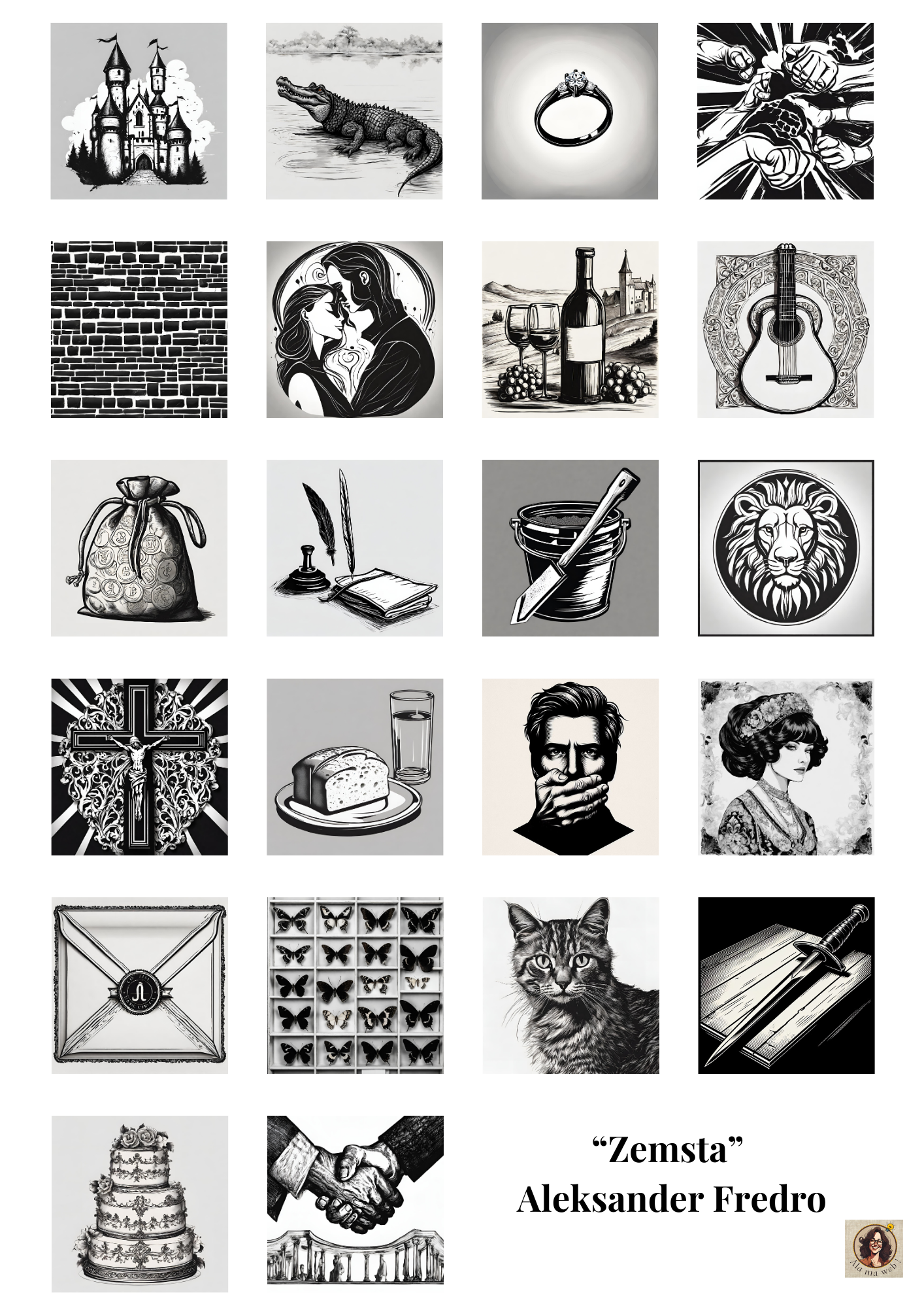 Każda plansza zawiera 22 obrazki nawiązujące do treści lektur. Plansze można wykorzystywać na lekcjach rozpoczynających pracę z utworem, jako kartkówkę ze znajomości treści lub jako materiał do powtórek przez E8 (można wówczas wyciąć wszystkie obrazki i poprosić uczniów o posegregowanie ich i dopasowanie do poszczególnych tytułów lektur).