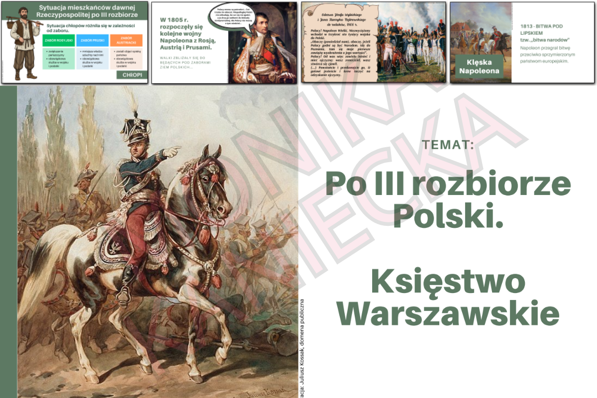 Prezentacja do tematów Po III rozbiorze Polski oraz Księstwo Warszawie dla klasy 6 szkoły podstawowej.