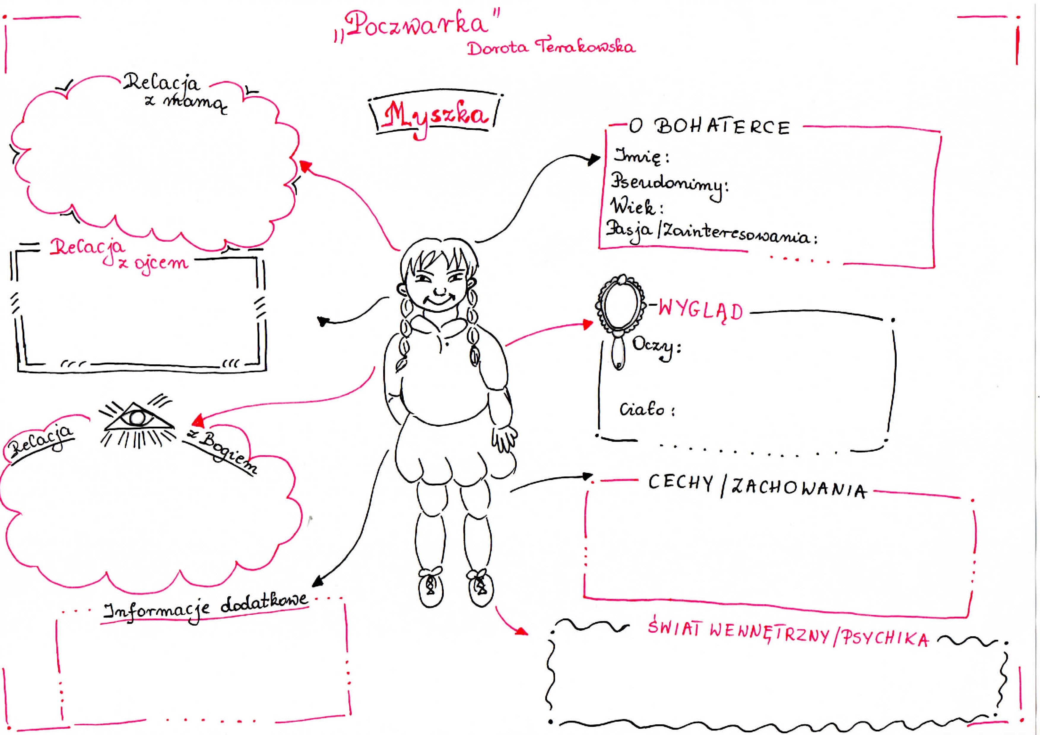 6 kart pracy do lektury "Poczwarka" D. Terakowskiej ( metafory i symbole, rodzice Marysi, metaplan - inni wobec Marysi, Myszka - charakterystyka bohaterki, znaczenie tytułu, Światowy Dzień Zespołu Downa).