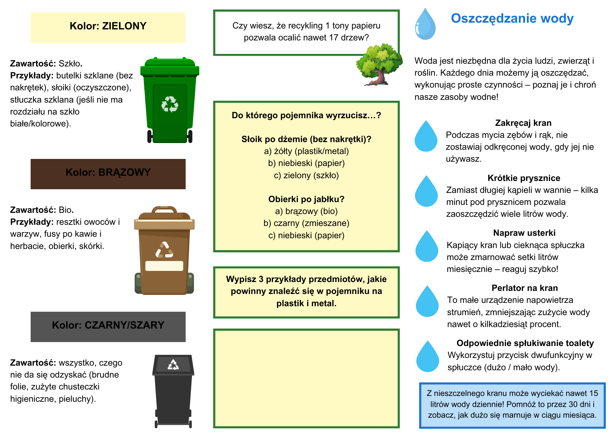 Poznaj kompleksowy, praktyczny materiał edukacyjny, który w prosty i atrakcyjny sposób przybliża kluczowe zasady dbania o środowisko. Dzięki niemu zarówno uczniowie, jak i dorośli nauczą się, jak segregować śmieci, oszczędzać wodę, ograniczać zużycie energii oraz wprowadzać w życie ideę zrównoważonej konsumpcji.