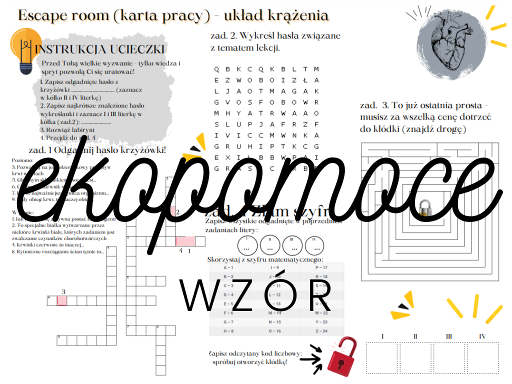 Zapraszam do skorzystania z gotowego rozwiązania na lekcję powtórzeniową z układu krążenia (szkoła podstawowa - 7 klasa). Karta pracy została opracowana w formie zagadki do rozwiązania z elementami zagadnień biologicznych z działu Układ Krążenia (podsumowanie).