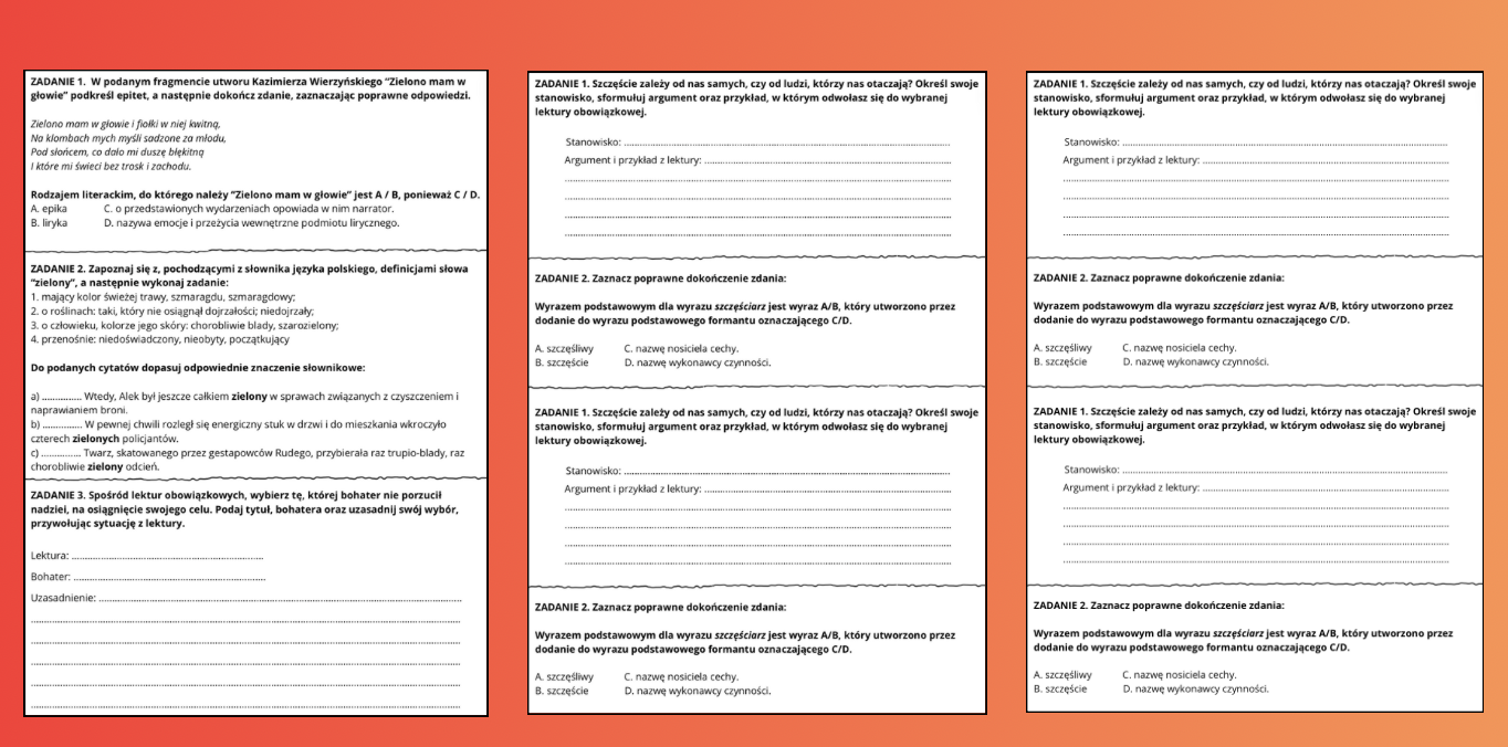 Zestaw zadań egzaminacyjnych (po 3/4) do każdego wiersza: