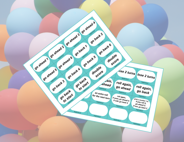 – Schowane w woreczku lub torebce do losowania – tworząc układ gry można zostawić puste przestrzenie-przerwy, które będą oznaczały, że gracz musi wylosować z woreczka akcję do wykonania.