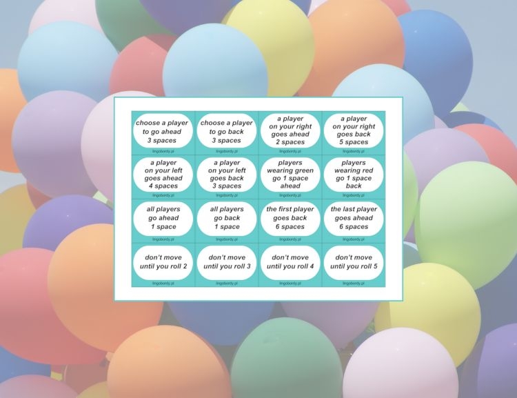 – Rozłożone spodem do góry tak, żeby polecenia były niewidoczne i odkrywane dopiero po tym, jak gracz zatrzyma się na danym polu. Wtedy dodatkowo po odczytaniu można położyć nowe polecenie spodem do góry, żeby uniknąć powtórzenia i sprawić, że gra stanie się jeszcze bardziej interesująca.
