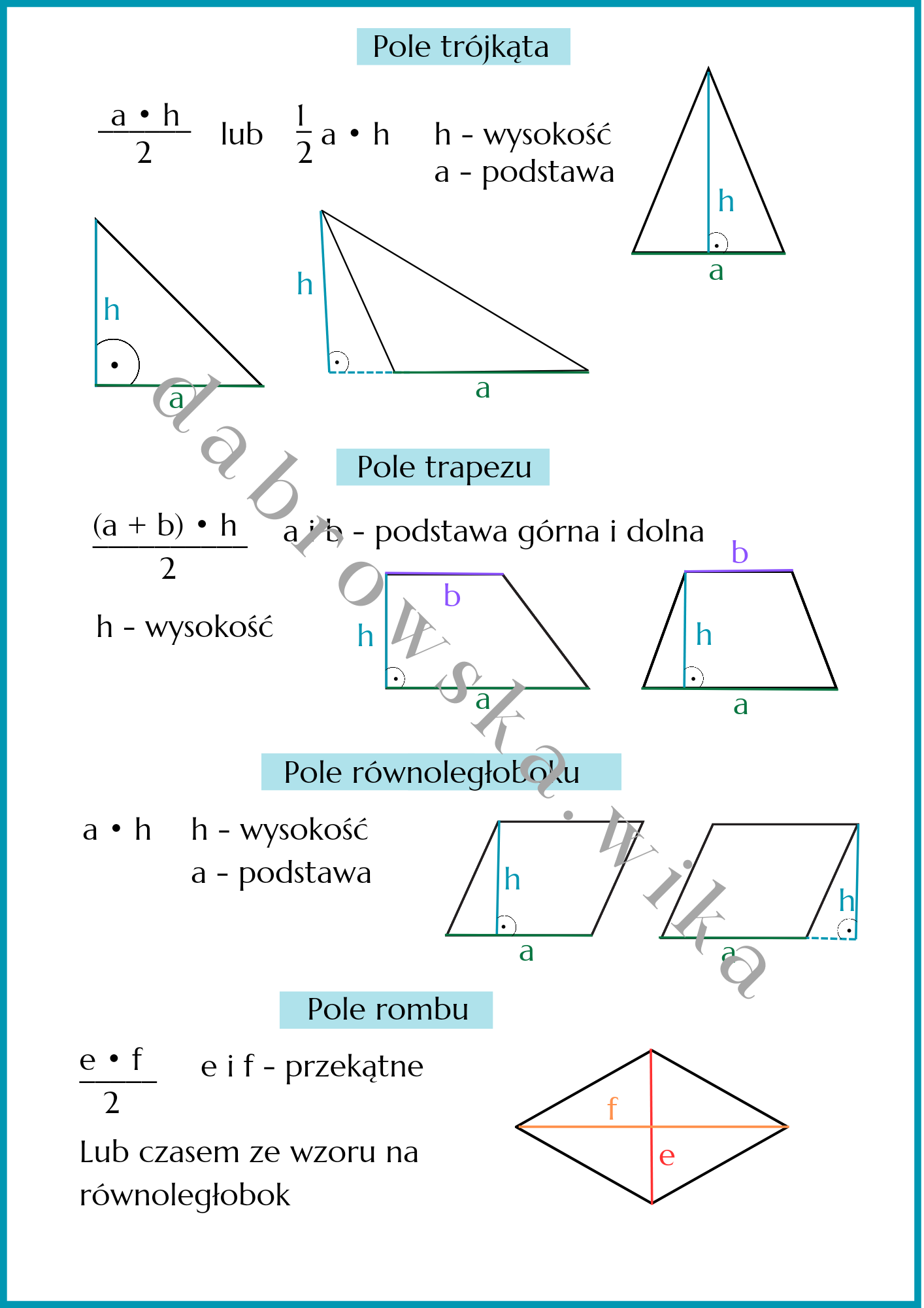 Notatka świetnie sprawdzi się jako wklejka do zeszytu i ułatwi zapamiętanie i zrozumienie wzorów na pola