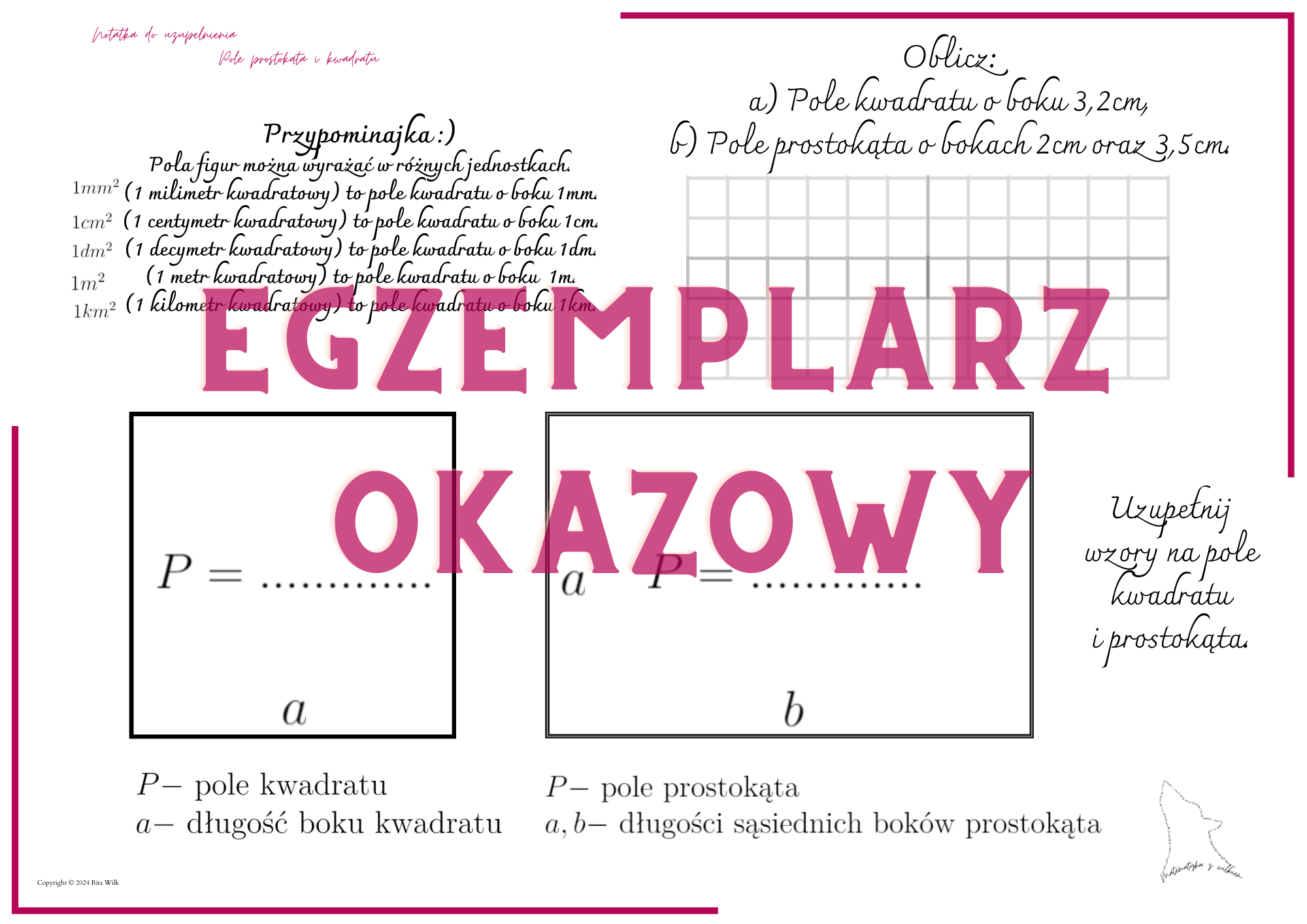Pole prostokąta i kwadratu - notatka do uzupełnienia