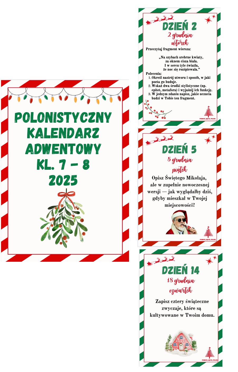 🎄✨ Polonistyczny kalendarz adwentowy dla klas 7-8! ✨🎄