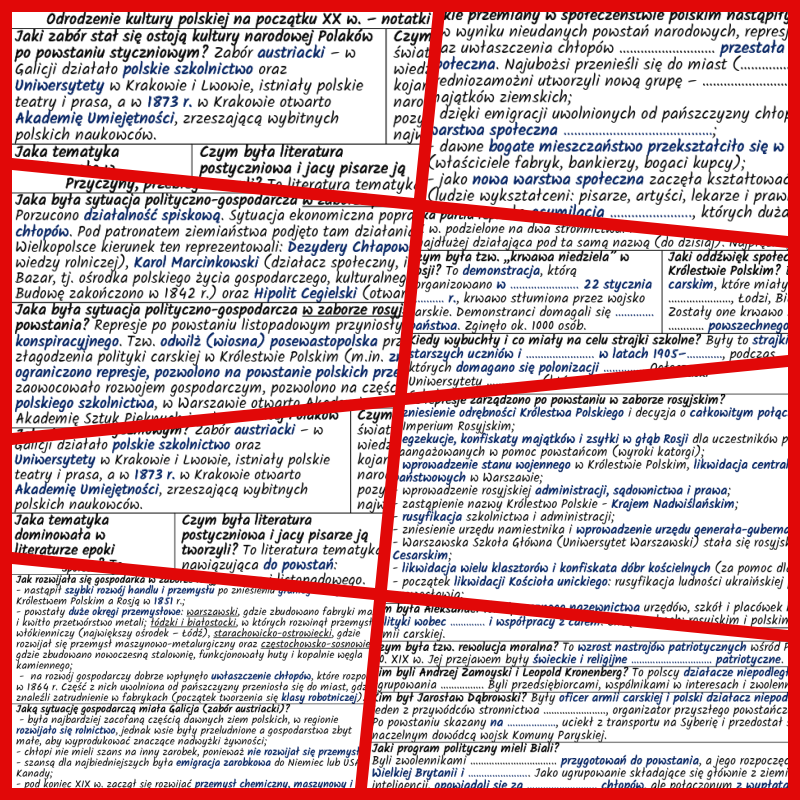 przygotowany według podstawy programowej nauczania historii w klasie 7 szkoły podstawowej (Podstawa programowa – Historia – Szkoła podstawowa IV-VIII), wraz z kalendarium najważniejszych wydarzeń opisanych w notatkach.