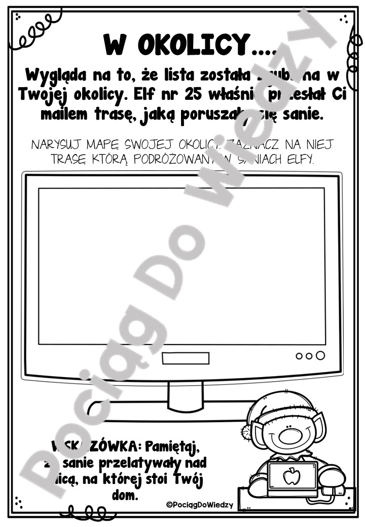 Pomocy! Lista Grzecznych Dzieci zaginęła - praca metodą projektu Ten projekt rozwija wyobraźnię i kreatywność uczniów, którzy pracują nad problemem znalezienia zagubionej listy. Projekt składa się z 12 zadań, które uczniowie muszą wykonać, aby przejść przez projekt do końca. Jak to się stało – Wprowadzenie 1. Czas Ucieka! 2. Dookoła Świata 3. Coraz Bliżej 4. W okolicy 5. Lista odnaleziona 6. Święty Mikołaj czeka 7. Ruszamy na biegun 8. Pakuj walizki 9. Proszę wsiadać, drzwi zamykać 10. Nareszcie na biegunie 11. Z wizytą u Mikołaja 12. Nasz bohater W zadaniach wykorzystane są elementy twórczego pisania, rozumienia tekstu, geografii oraz zabawy literami. Podczas pracy nad projektem uczniowie podejmują własne decyzje, oparte na wyobraźni, kreatywności i bazie ich wiedzy, dlatego każdy ukończony projekt jest inny i jedyny w swoim rodzaju. Uczniowie mogą pracować nad projektem pojedynczo, parami lub w grupach.