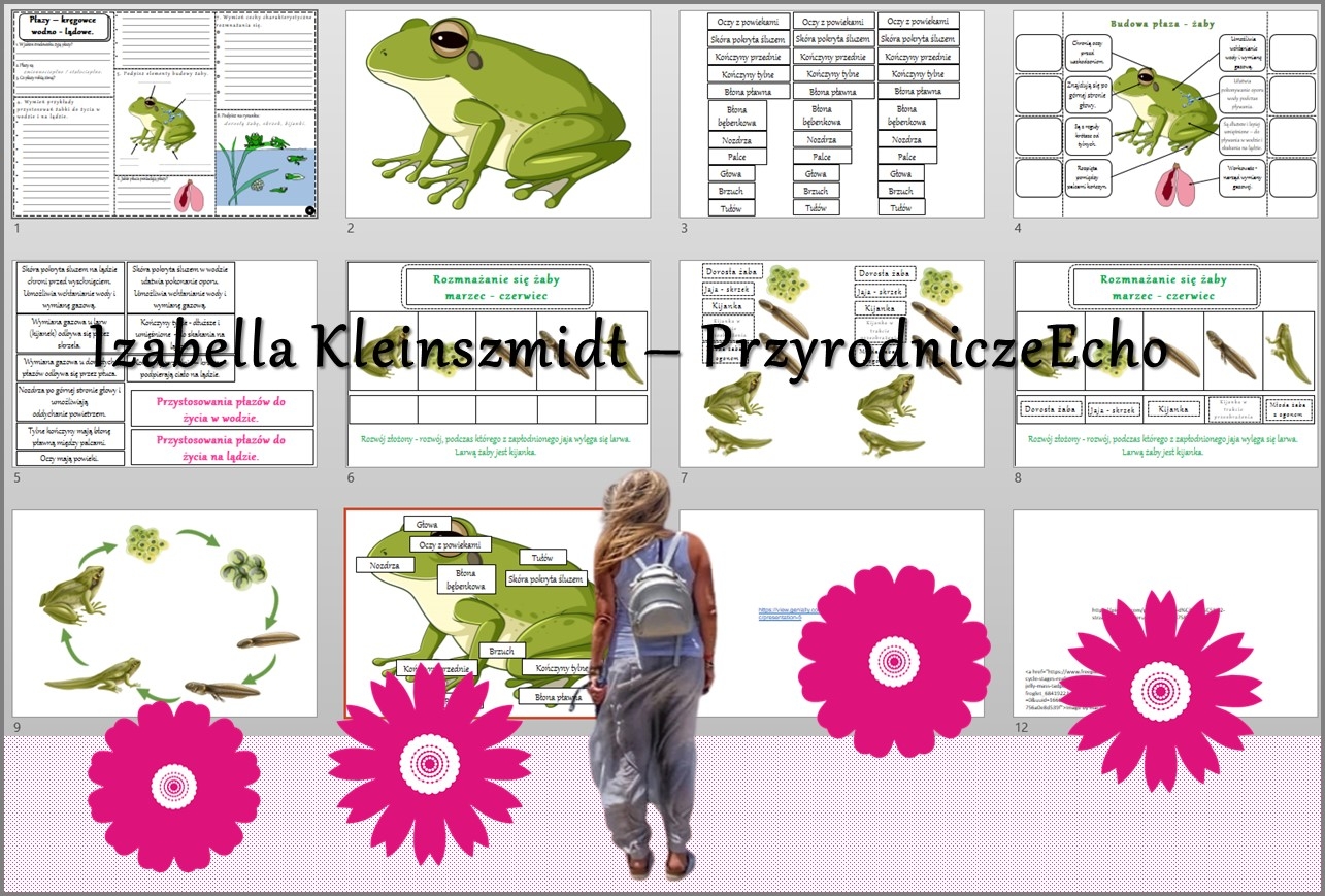 Pomysł na lekcję/karta pracy/stacje zadaniowe/ materiał do lekcji do tematu „Płazy – kręgowce wodno-lądowe” w pdf. W gratisie niekomercyjny scenariusz lekcji/pomysł na lekcję w programie genial.ly do edycji. Biologia 6. Dział „Kręgowce zmiennocieplne”.