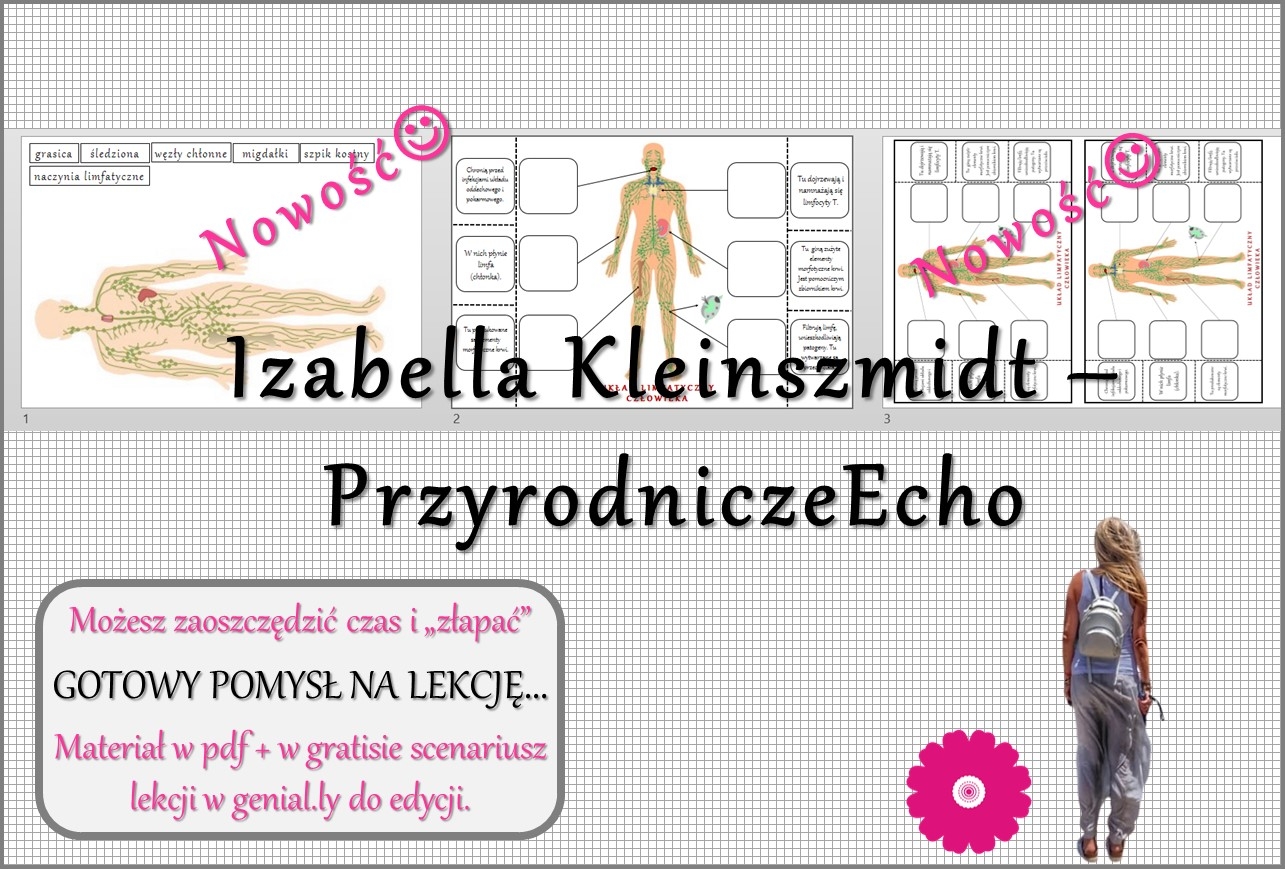 Pomysł na lekcję/karta pracy/stacje zadaniowe/materiał do lekcji do tematu „Układ limfatyczny” w pdf. W gratisie niekomercyjny scenariusz lekcji/pomysł na lekcję w programie genial.ly do edycji. Biologia 7. Dział „Układ krwionośny”.