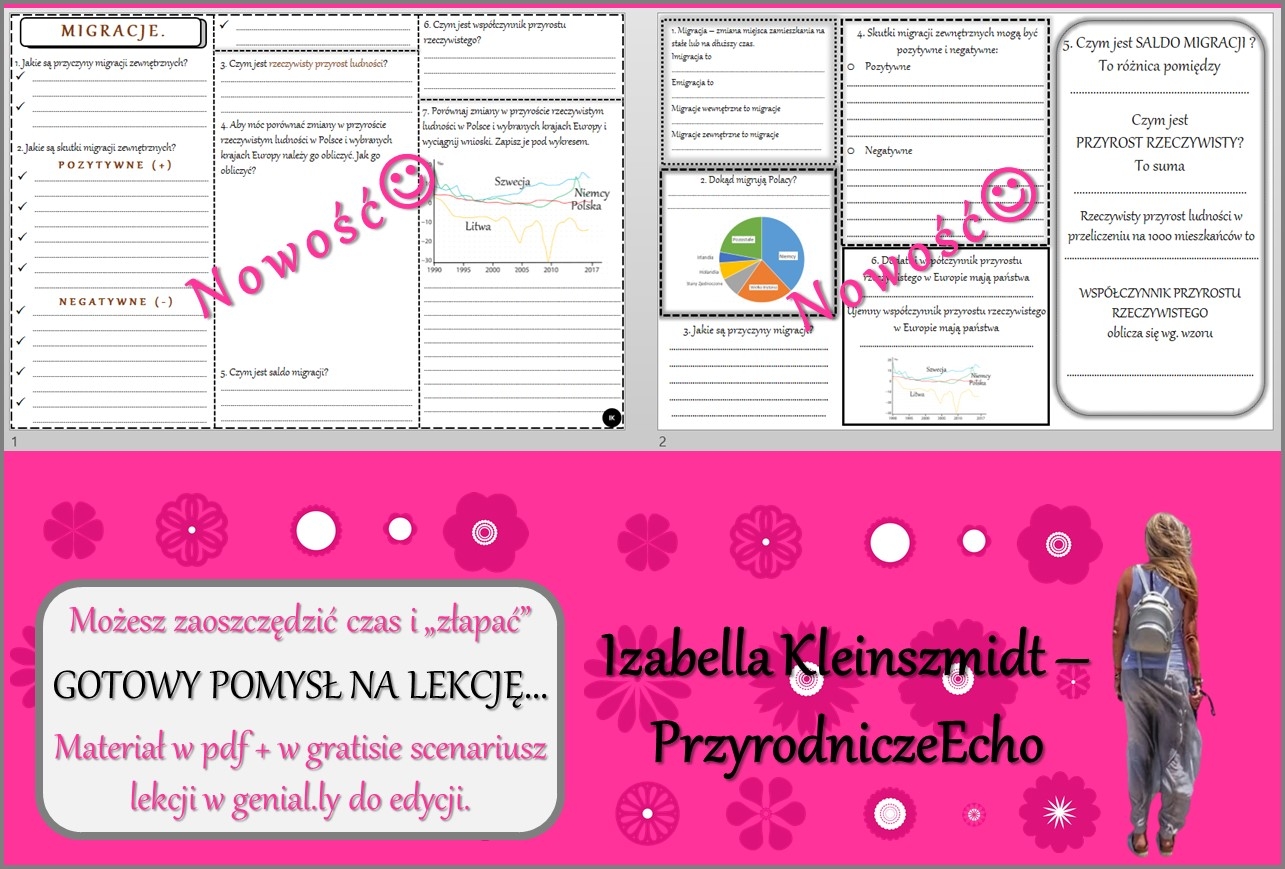 Pomysł na lekcję/karta pracy/stacje zadaniowe/ notatki/ materiał do lekcji do tematu „Migracje” w pdf. W gratisie niekomercyjny scenariusz lekcji/pomysł na lekcję w programie genial.ly do edycji. Geografia 7. Dział „Ludność i urbanizacja”. Nowość 2024/20