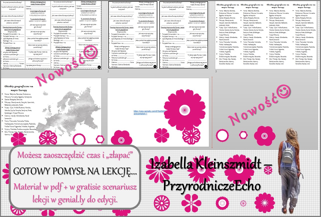 Zapraszam do zakupu materiału do przeprowadzenia lekcji (materiał jest w pdf). Można go wykorzystać jako notatkę, kartę pracy lub stacje zadaniowe do pracy w grupach. Do tego dołączam w gratisie niekomercyjny scenariusz lekcji w programie genial.ly – czyli pomysł na przeprowadzenie zajęć (krok po kroku) do własnego użytku. Lekcja w genial.ly oczywiście jest do edycji.