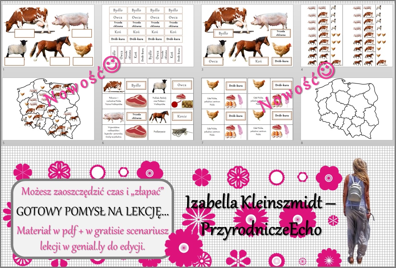 Witajcie Nazywam się Izabella Kleinszmidt (PrzyrodniczeEcho). Jestem nauczycielem przyrody, biologii, geografii i chemii w szkole podstawowej w Pomysku Wielkim. Uwielbiam mój zawód i cieszę się, że robię w życiu to co kocham. Pasja dla nauczyciela jest bardzo ważna:). Prowadzę stronę PrzyrodniczeEcho na FB, nagrywam filmiki do lekcji, konstruuję prezentacje i lekcje multimedialne, escape roomy oraz sketchnotki i karty pracy w programie power point. Zapraszam na stronę internetową mojej szkoły, gdzie znajdują się (niektóre darmowe) opracowania lekcji do przyrody, biologii, geografii i chemii w SP. Adres strony internetowej: https://sppomyskwielki.edu.pl - zakładka - dla ucznia. Od niedawna zapraszam również na moją stronę internetową: https://ikleinszmidt.wixsite.com/przyrodniczeecho Zapraszam do korzystania z mojej pracy:) Bardzo proszę również czytać opisy, aby wiedzieć, jaki materiał znajduje się w danym pliku. Zachęcam do kontaktu w razie jakichś pytań lub błędów w pomocach - brakach lub literówkach-wszystko można naprawić? Jakich materiałów możecie Państwo oczekiwać? SKETCHNOTKA - notatka kompletna z określonego tematu KARTA PRACY - zazwyczaj sketchnotka z wykropkowanymi miejscami PREZENTACJA MULTIMEDIALNA - kompletne wiadomości do odpowiedniego tematu wraz z grafiką i tekstem - zarówno w power point jak i genially - tę koniecznie należy zapisać na swoim koncie! LEKCJA MULTIMEDIALNA - pomysł na przeprowadzenie lekcji - taki "tok lekcji" - skrócony scenariusz ZESTAWY - proszę się wczytać w opis, informuję co mieści się w konkretnym zestawie:) Pozdrawiam cieplutko:)