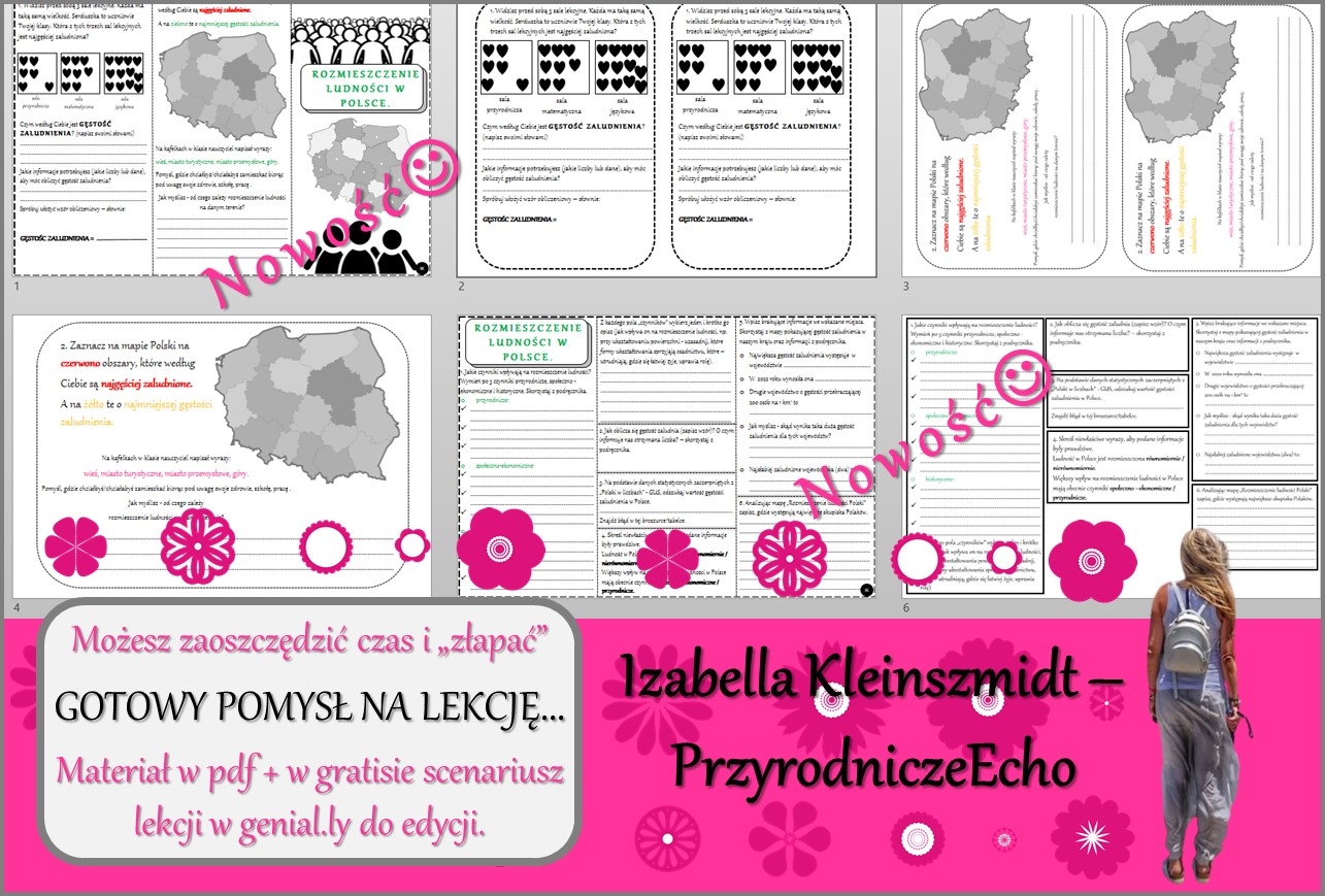 Witajcie Nazywam się Izabella Kleinszmidt (PrzyrodniczeEcho). Jestem nauczycielem przyrody, biologii, geografii i chemii w szkole podstawowej w Pomysku Wielkim. Uwielbiam mój zawód i cieszę się, że robię w życiu to co kocham. Pasja dla nauczyciela jest bardzo ważna:). Prowadzę stronę PrzyrodniczeEcho na FB, nagrywam filmiki do lekcji, konstruuję prezentacje i lekcje multimedialne, escape roomy oraz sketchnotki i karty pracy w programie power point. Zapraszam na stronę internetową mojej szkoły, gdzie znajdują się (niektóre darmowe) opracowania lekcji do przyrody, biologii, geografii i chemii w SP. Adres strony internetowej: https://sppomyskwielki.edu.pl - zakładka - dla ucznia. Od niedawna zapraszam również na moją stronę internetową: https://ikleinszmidt.wixsite.com/przyrodniczeecho Zapraszam do korzystania z mojej pracy:) Bardzo proszę również czytać opisy, aby wiedzieć, jaki materiał znajduje się w danym pliku. Zachęcam do kontaktu w razie jakichś pytań lub błędów w pomocach - brakach lub literówkach-wszystko można naprawić? Jakich materiałów możecie Państwo oczekiwać? SKETCHNOTKA - notatka kompletna z określonego tematu KARTA PRACY - zazwyczaj sketchnotka z wykropkowanymi miejscami PREZENTACJA MULTIMEDIALNA - kompletne wiadomości do odpowiedniego tematu wraz z grafiką i tekstem - zarówno w power point jak i genially - tę koniecznie należy zapisać na swoim koncie! LEKCJA MULTIMEDIALNA - pomysł na przeprowadzenie lekcji - taki "tok lekcji" - skrócony scenariusz ZESTAWY - proszę się wczytać w opis, informuję co mieści się w konkretnym zestawie:) Pozdrawiam cieplutko:)