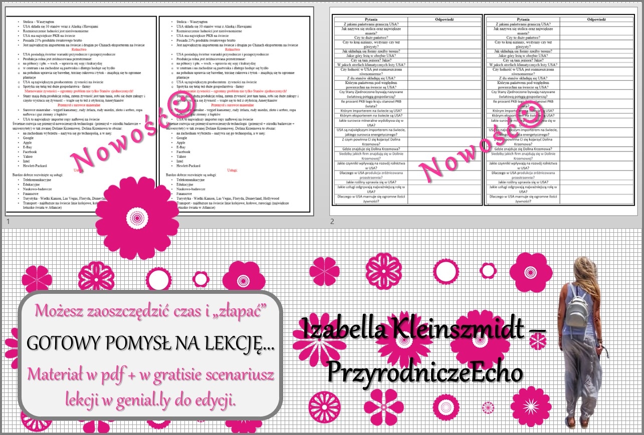 Zapraszam do zakupu materiału do przeprowadzenia lekcji (materiał jest w pdf). Można go wykorzystać jako notatkę, kartę pracy lub stacje zadaniowe do pracy w grupach. Do tego dołączam w gratisie niekomercyjny scenariusz lekcji w programie genial.ly – czyli pomysł na przeprowadzenie zajęć (krok po kroku) do własnego użytku. Lekcja w genial.ly oczywiście jest do edycji.