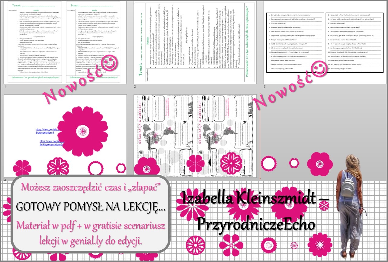 Zapraszam do zakupu materiału do przeprowadzenia lekcji (materiał jest w pdf). Można go wykorzystać jako notatkę, kartę pracy lub stacje zadaniowe do pracy w grupach. Do tego dołączam w gratisie niekomercyjny scenariusz lekcji w programie genial.ly – czyli pomysł na przeprowadzenie zajęć (krok po kroku) do własnego użytku. Lekcja w genial.ly oczywiście jest do edycji.