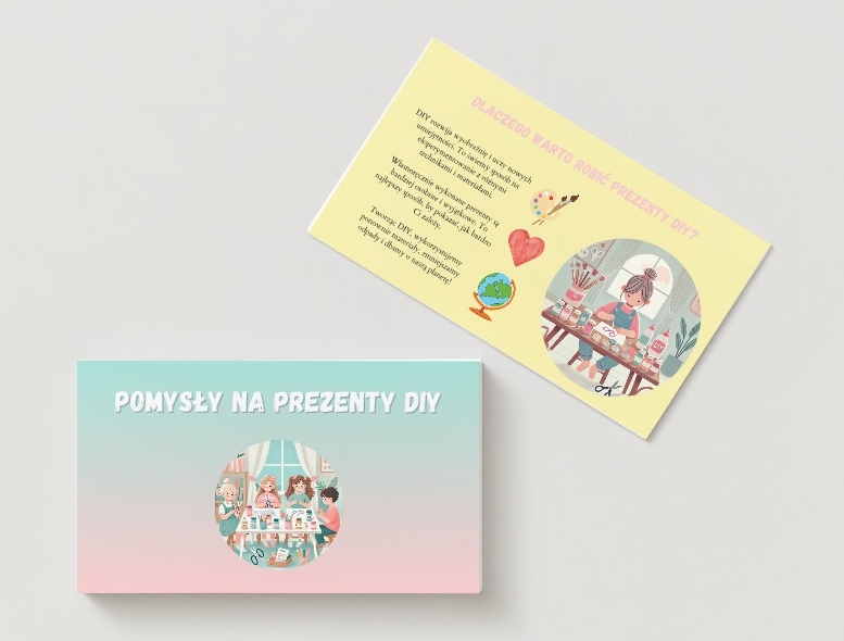 Przenieś swoją kreatywność na wyższy poziom z naszym kompletnym przewodnikiem DIY! 🎁 „Pomysły na Prezenty DIY” to unikalny materiał edukacyjny, który pomoże Ci stworzyć wyjątkowe, własnoręczne prezenty dla bliskich – od słodkich upominków, przez kosmetyki DIY, aż po dekoracje i ozdoby.