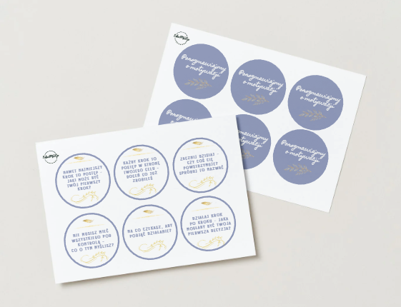 🔹 12 inspirujących pytań w postaci okrągłych fiszek + 12 rewersów, które otwierają przestrzeń do rozmowy, dzielenia się doświadczeniem i wspólnego odkrywania motywacji.
