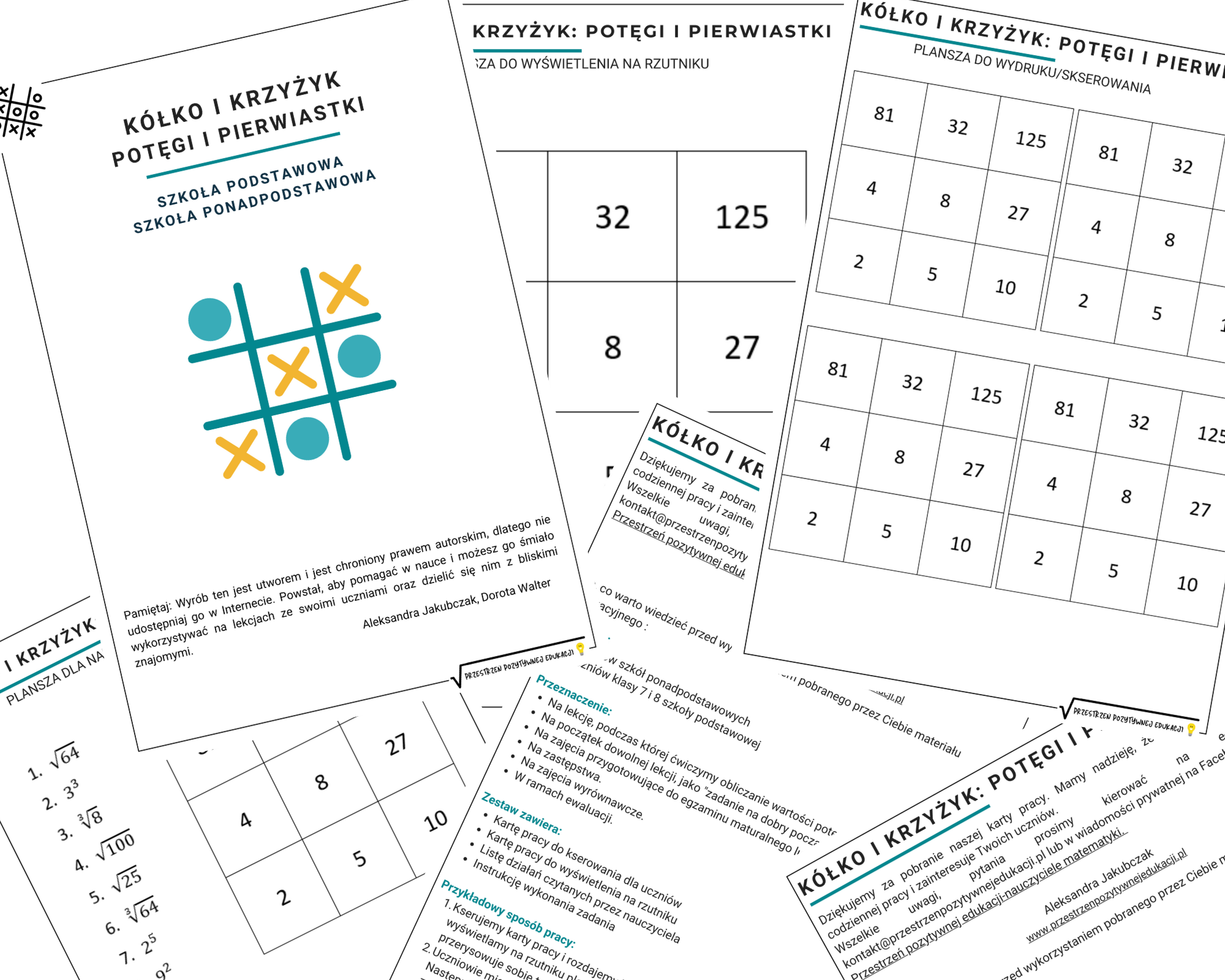 Gra dydaktyczna - podczas lekcji, gdzie powtarzamy działania na potęgach i pierwiastkach. Lekcja wprowadzająca. Angażująca wszystkich uczniów.