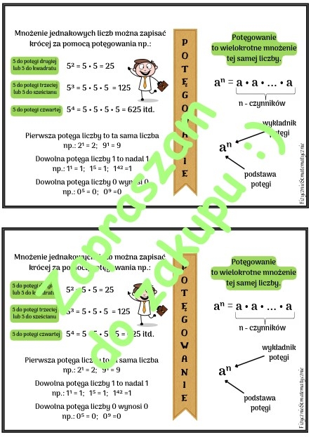 Potęgowanie - wklejka do zeszytu, klasa 4-6.