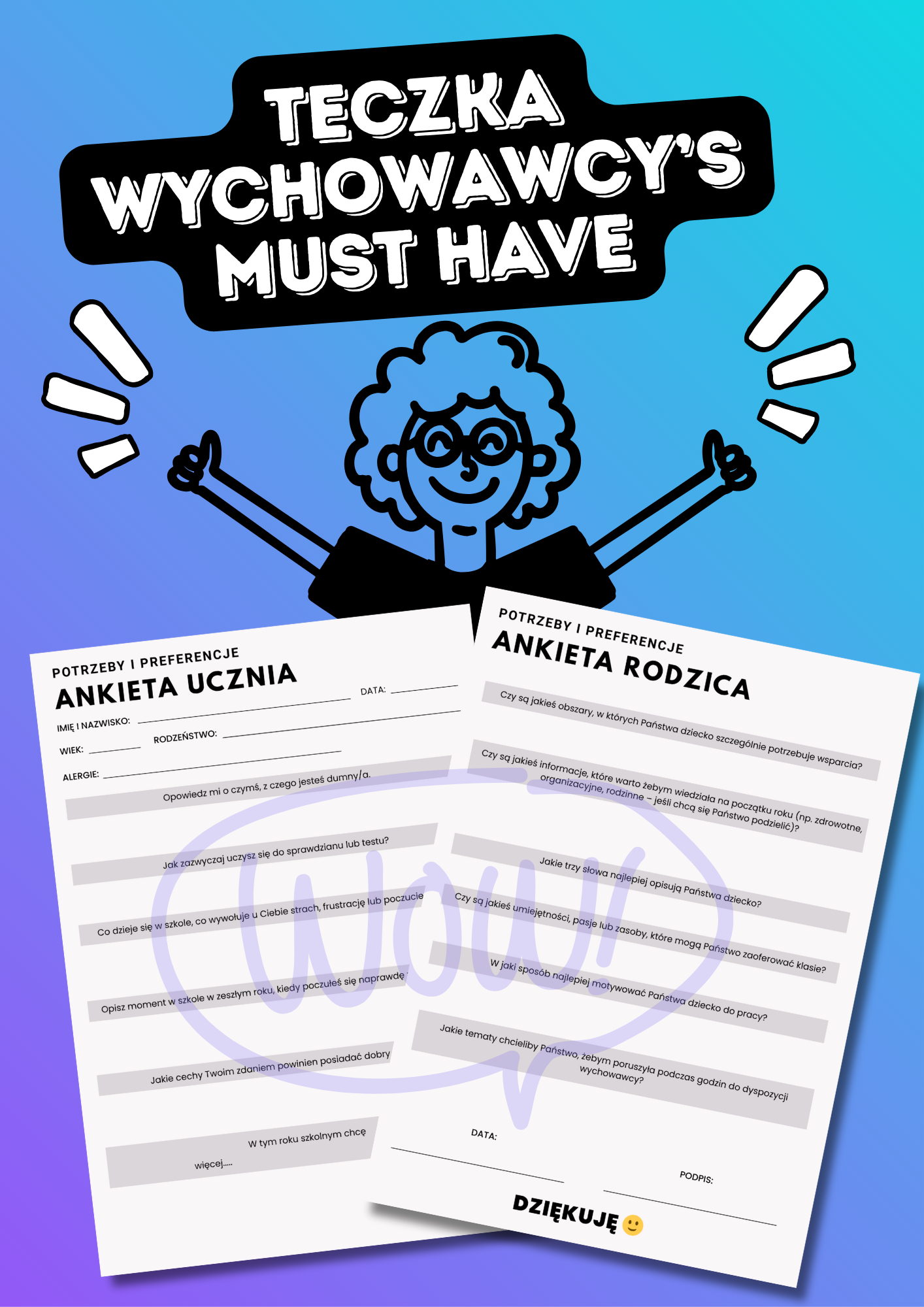 Mam dla Ciebie gotowe ankiety dla ucznia i rodzica, które: