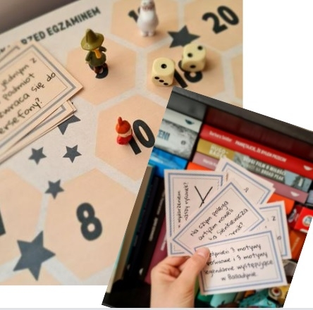 Gra planszowa idealna na powtórzenie wiadomości z treści lektur tuż przed egzaminem ósmoklasisty.