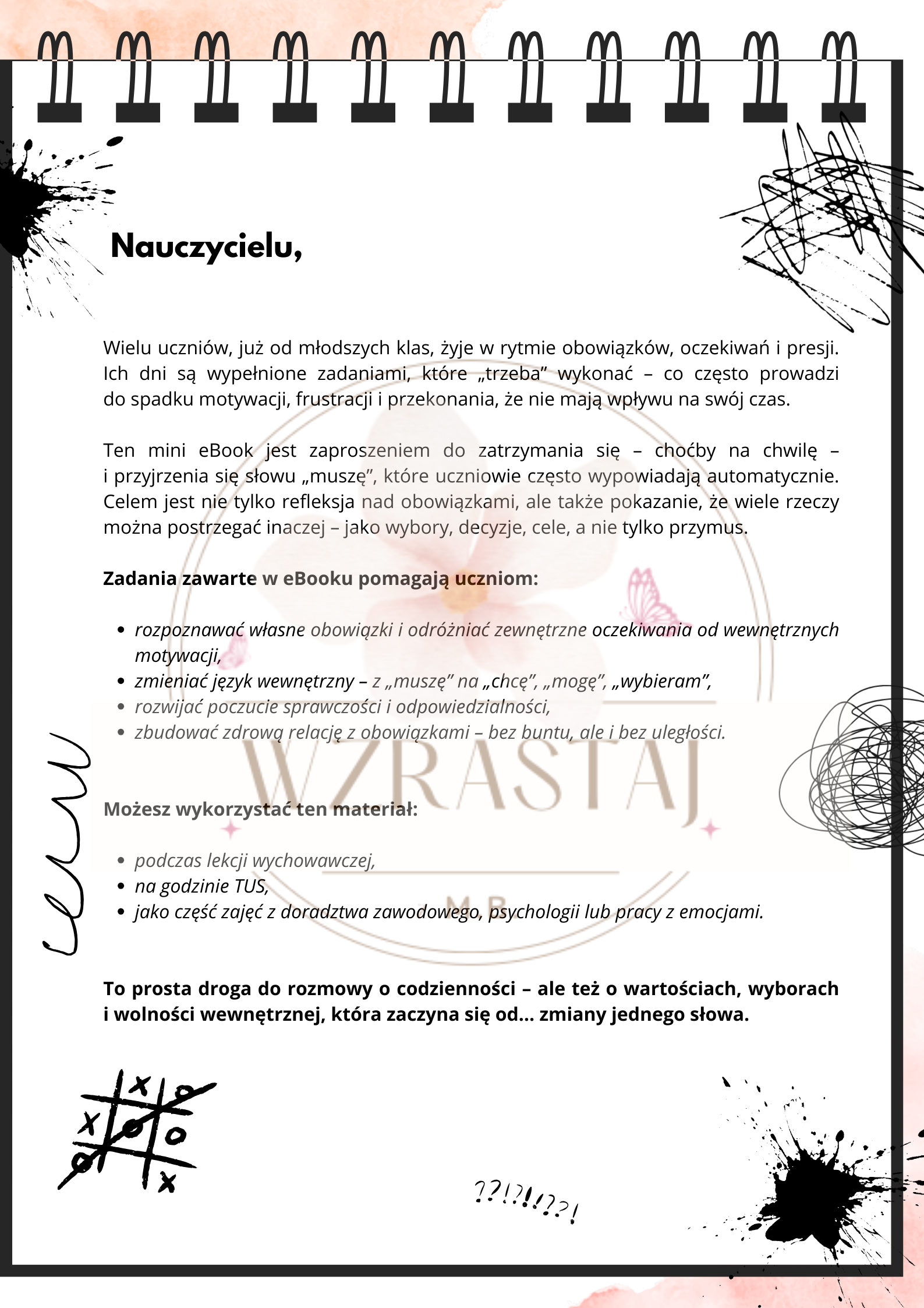 👉 Ten e-book to wsparcie dla nauczyciela, który chce prowadzić lekcje z sensem, lekkością i przestrzenią do refleksji, zamiast z poczuciem przymusu.