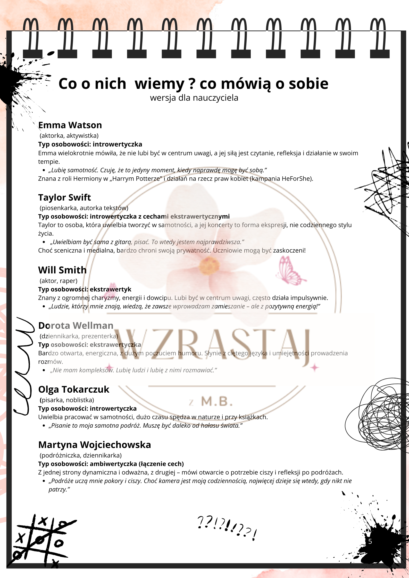 ✨ pozwalają uczniom samodzielnie zdecydować, czy znane postaci są bardziej introwertyczne, ekstrawertyczne czy… gdzieś pośrodku,