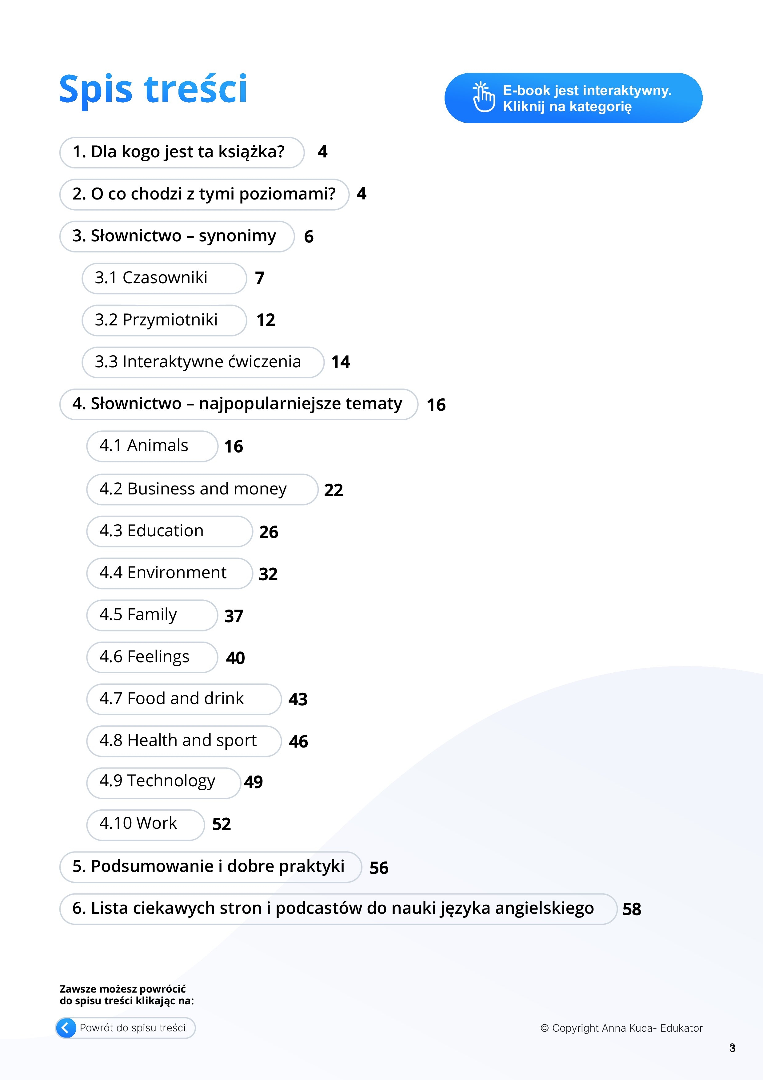 Farewell to B1 to interaktywny ebook, który świetnie sprawdzi się na zajęciach z uczniami przygotowującymi się do egzaminów (Matura, FCE) lub do pracy z uczniami dorosłymi. Znajdziesz w nim zadanie tradycyjne, interaktywne, zestawy quizlet oraz mnóstwo "language hacks" i wskazówek dotyczących tego jak się uczyć i jak osiągnąć wyższy poziom. Ebook jest idealnym rozwiązaniem dla uczniów, którzy: