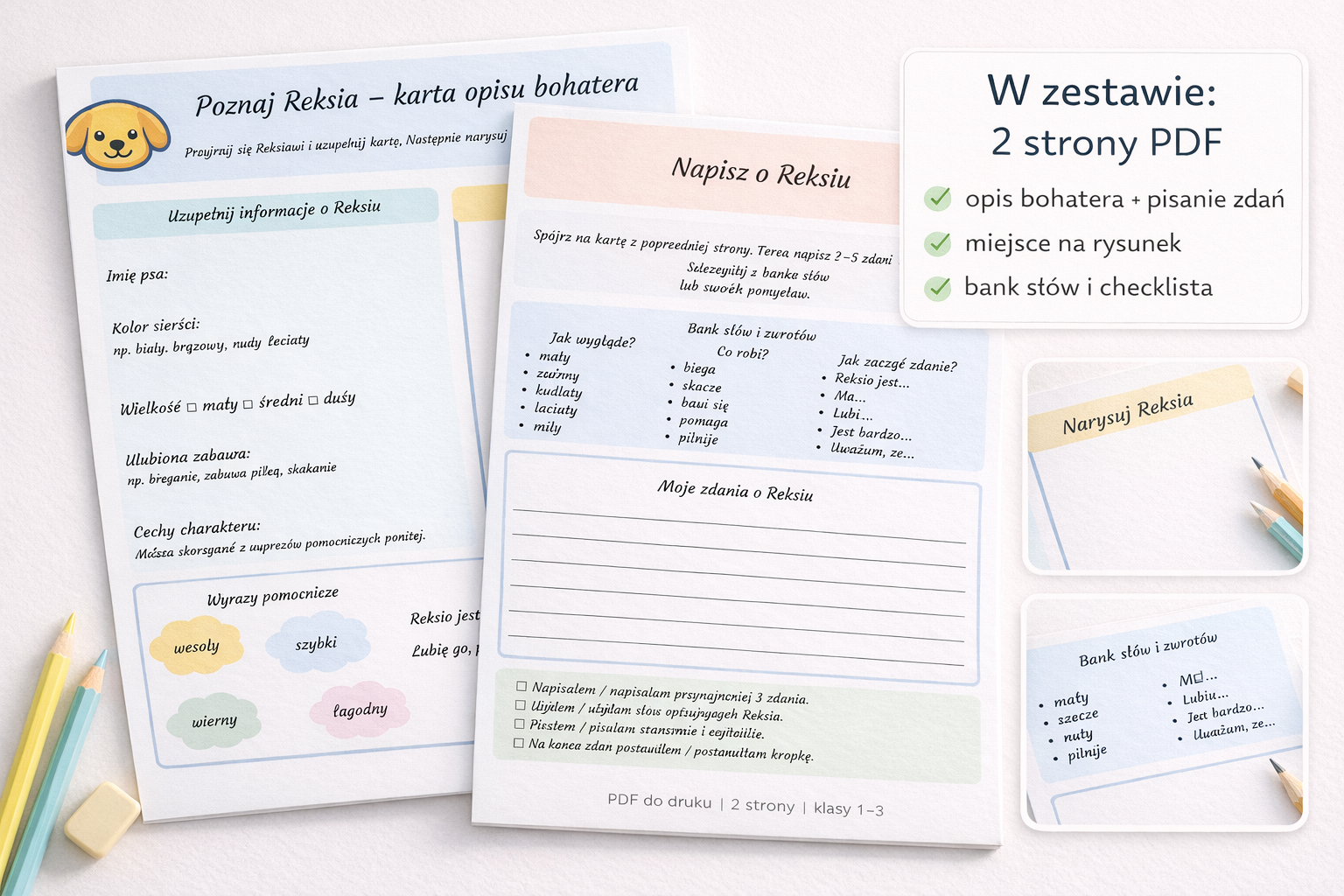 #kartapracy #pdfdodruku #językpolski #edukacjawczesnoszkolna #klasy123 #nauczyciel #pomoceedukacyjne #materiałydladzieci #naukaprzezzabawę #pisaniezdań #opisbohatera #rek sio #kartapracypdf #polskiwdomu #drukowalne