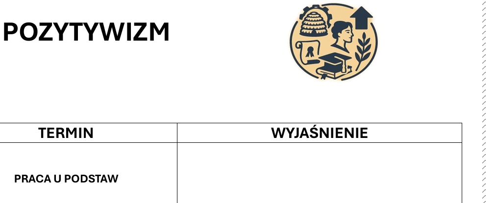 Karta pracy na której wypisane zostały najważniejsze pojęcia z epoki pozytywizmu (praca organiczna, praca u podstaw, emancypacja kobiet, utylitaryzm itd.). Forma tabelki, którą można rozdać przy wprowadzeniu do epoki do wypełnienia podczas lekcji lub do samodzielnego uzupełnienia. Może się również przydać do powtórek przed maturą.
